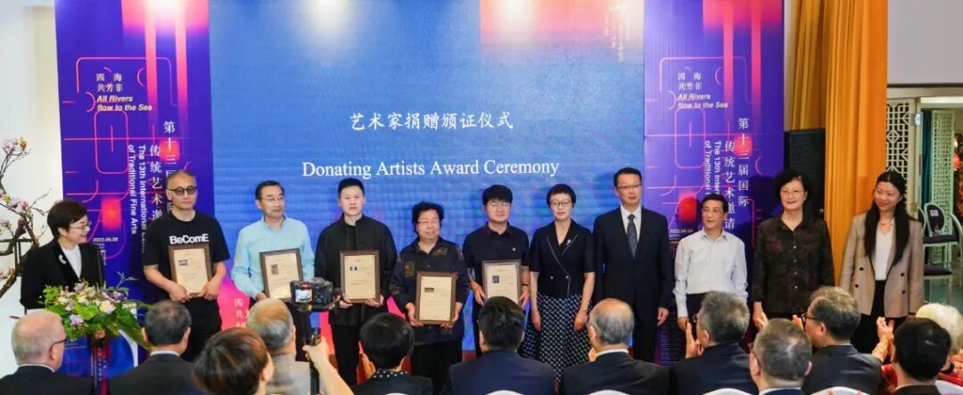 相关领导为艺术家颁发捐赠证书