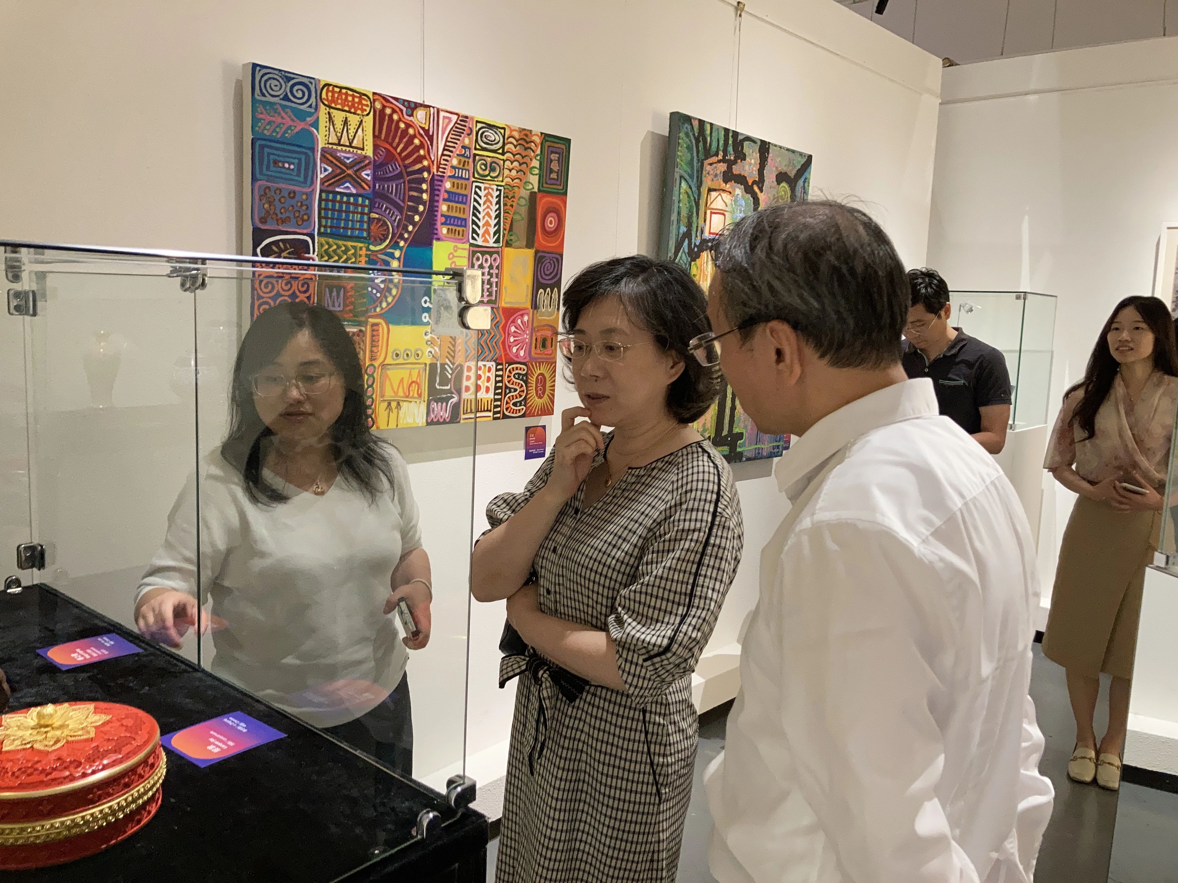 共建座谈结束后,来宾们兴致勃勃地参观了正在我馆举办的“第十三届国际传统艺术邀请展”。