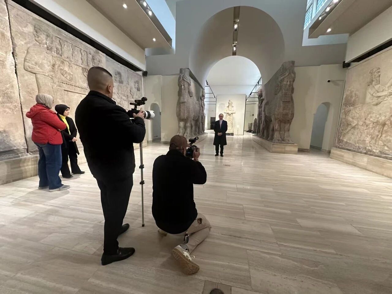 签约仪式后,代表团在伊方安排下,专门考察了正处于修缮中的伊拉克国家博物馆,重点参观了史前文明展厅与气势恢宏的亚述文明展厅,近距离感受了美索不达米亚文明的深厚积淀。