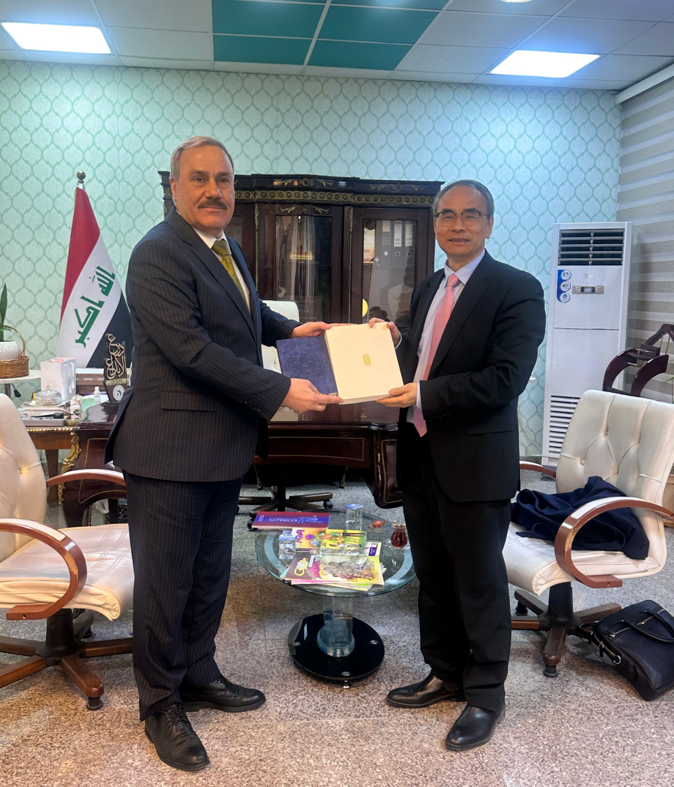 胡木清理事长向伊拉克国家图书与档案馆馆长赠送我馆编辑的图书