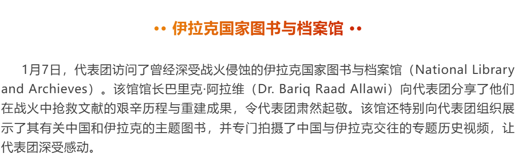 随后,代表团拜访中国驻伊拉克大使馆,受到崔巍大使、徐海风参赞等领导的热情接待。
