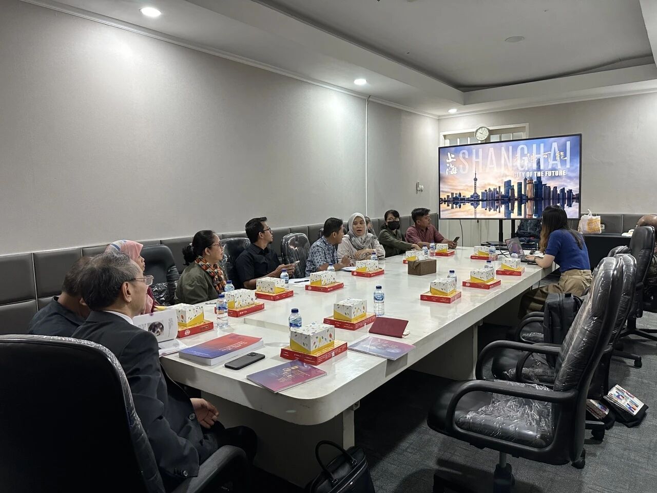 1月23日下午,印尼国家旅游和创意经济部副部长Muhammad Neil El Himam,音乐、电影和动画创意产业总监Moh. Amin与胡木清理事长一行进行了会谈,Muhammad副部长不仅主动提出与我馆签署战略合作协议的意向,还对活动的具体问题都提出了指导意见。
