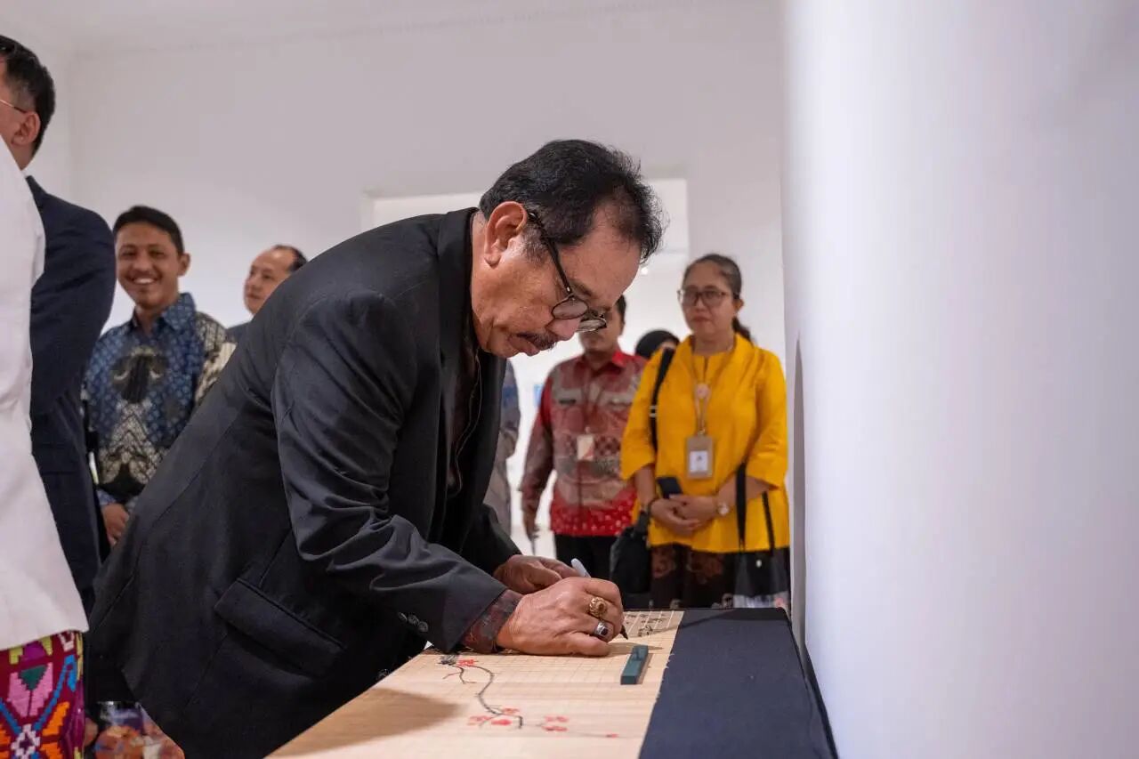 当天的开幕式隆重热烈。中国驻印尼大使馆临时代办周侃公使和夫人王俊淳、印度尼西亚旅游和创意经济部副部长尼·梅缇·阿玉·马蒂尼(Ni Made Ayu Marthini)、印尼国家清真寺大伊玛目(教皇)纳沙鲁迪·乌玛尔(Nasaruddin Umar)、印尼巴厘省原副省长提约克·奥卡·苏卡瓦提(Tjokorda Oka Artha Ardana Sukawati)、中国驻印尼大使馆参赞邱薪力,印尼国家教育、文化、研究和技术部文化遗产局综合司司长布拉曼塔拉(Brahmantara)、博物馆和美术馆管理司司长扎姆雷德·内加拉(Zamrud Setya Negara),印尼杰出侨领、苏钢集团董事长苏用发,印尼国家博物馆馆长钱德拉·德维(Chandra Dewi)、印尼国家美术馆馆长杰洛特·马亨德拉(Jarot Mahendra)、日惹特区文化厅厅长迪安·拉克希米·普拉蒂维(Dian Lakshmi Pratiwi)和以上海市非物质文化遗产保护中心主任吴鹏宏为团长的上海市代表团,总策展人、上海艺术品博物馆理事长胡木清等众多中外贵宾出席了开幕式。