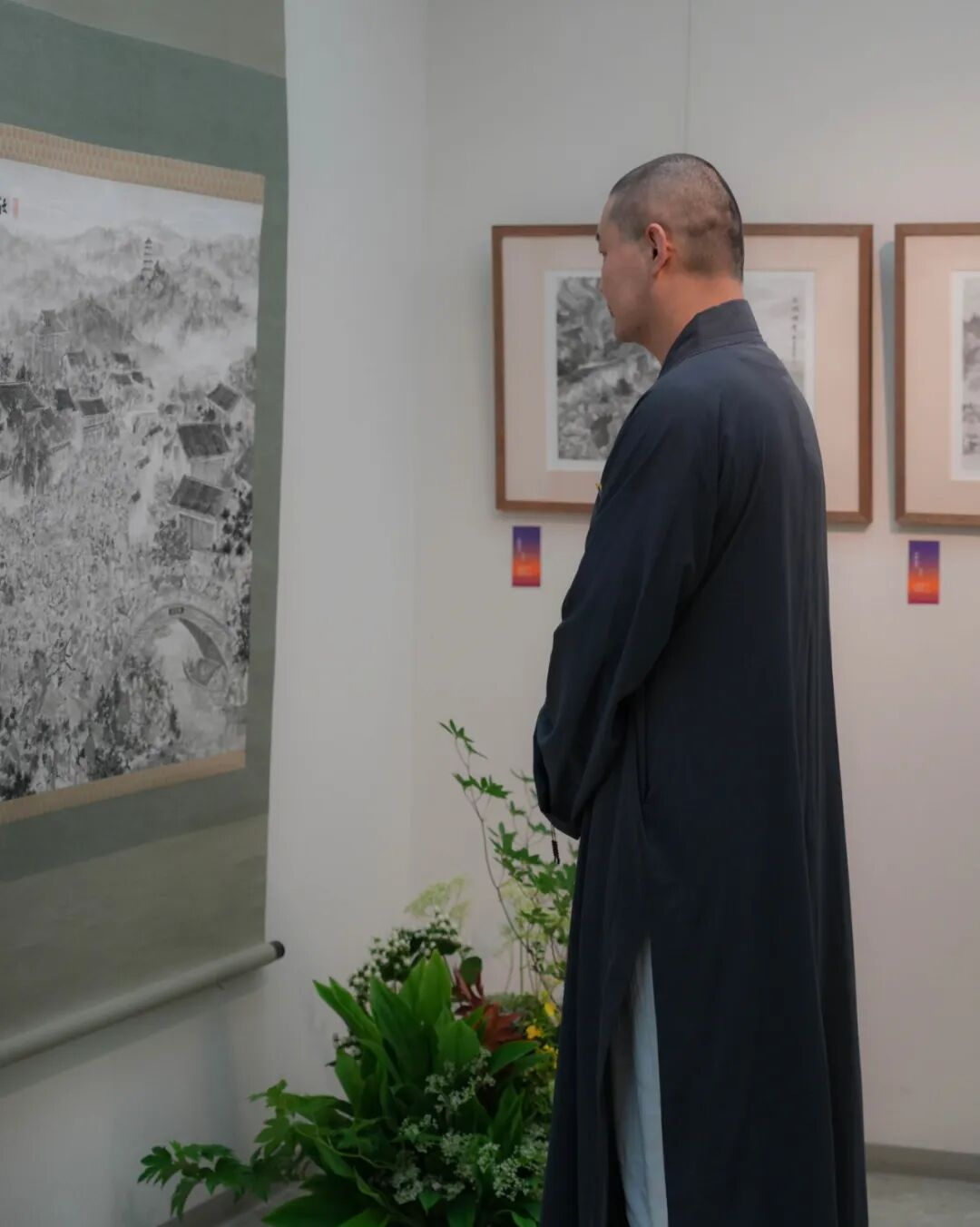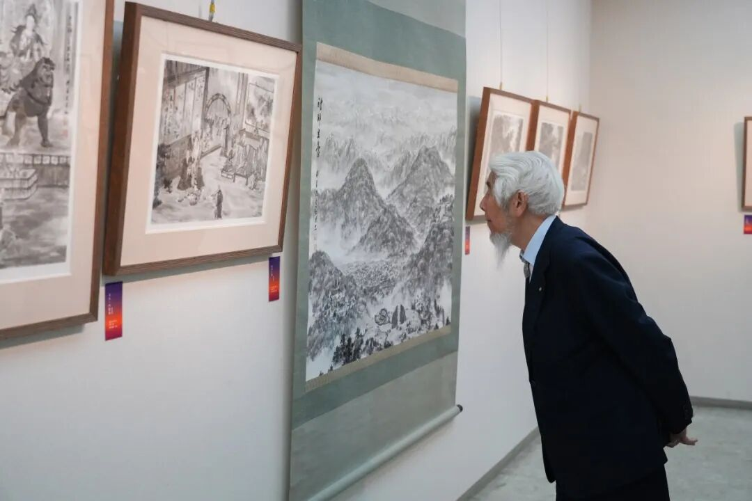 本次展览集中展出了著名旅日水墨画家、艺术大师傅抱石之女傅益瑶女士所创作的《圆仁入唐求法巡礼记》组画等书画精品。艺术家以精湛的水墨语言再现圆仁法师艰辛而辉煌的求法之路,在浓淡枯润之间勾勒出一条跨越千年的心灵航路,展现出别具一格的东方美学意境。