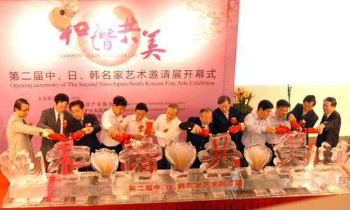 一场云集中国、日本、韩国顶级艺术家的高端艺术展览——由上海市创意产业协会和上海市长宁区人民政府主办,上海艺术品博物馆承办的第二届中、日、韩名家艺术邀请展,于6月10日至25日在上海艺术品博物馆新馆举行。这也是本馆迁址风景如画的天山公园新馆后举行的首场开馆之展。上海市人大常委会主任刘云耕、日本国驻上海总领事馆总领事泉裕泰、大韩民国驻上海总领事馆总领事安总基等众多中日韩领导及著名艺术家代表出席了开幕式。