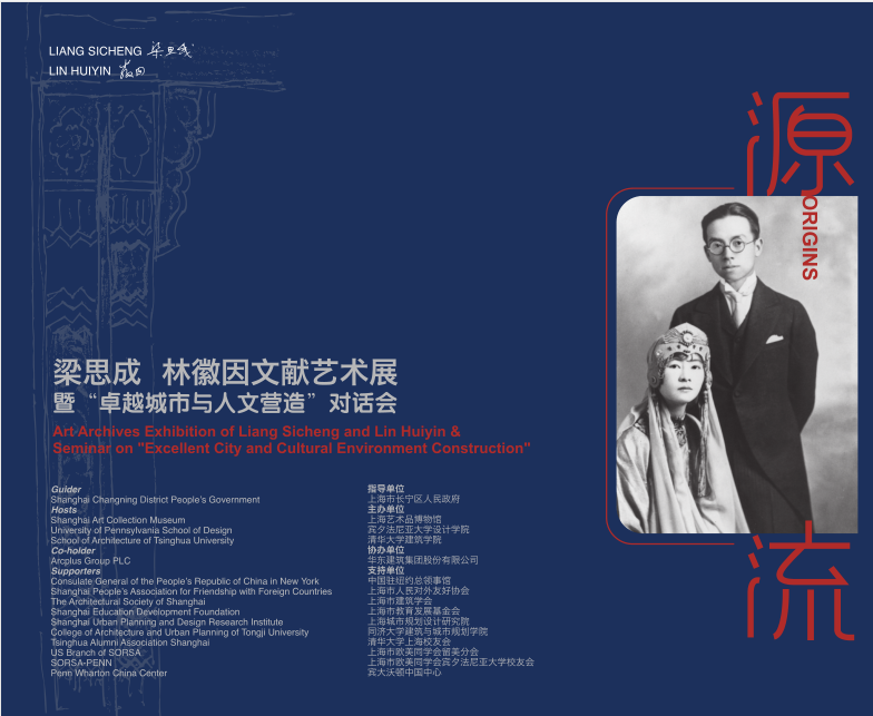 由上海市长宁区人民政府指导,上海艺术品博物馆、美国宾夕法尼亚大学设计学院、清华大学建筑学院联合主办,华东建筑集团股份有限公司协办,中国驻纽约总领事馆、上海市人民对外友好协会、市建筑学会、市教育发展基金会,上海城市规划设计研究院、同济大学建筑与城市规划学院、清华大学上海校友会,上海市欧美同学会留美分会、宾夕法尼亚大学校友会,宾大沃顿中国中心等众多机构积极支持的“源流——梁思成、林徽因文献艺术展”,既是纪念中国著名建筑艺术家梁思成、林徽因入读美国宾夕法尼亚大学95周年的主题活动,同时也是庆贺上海艺术品博物馆开馆10周年的纪念活动。